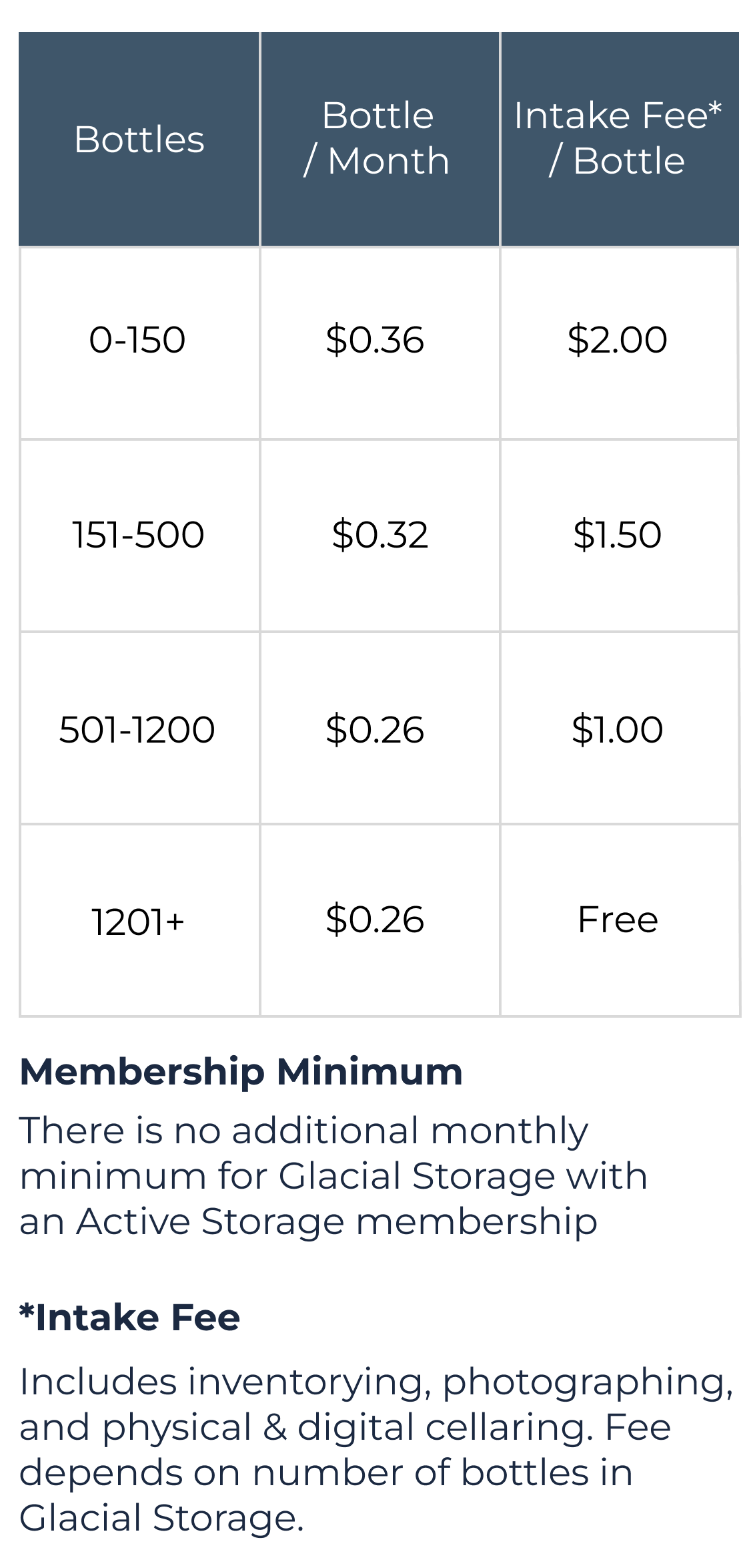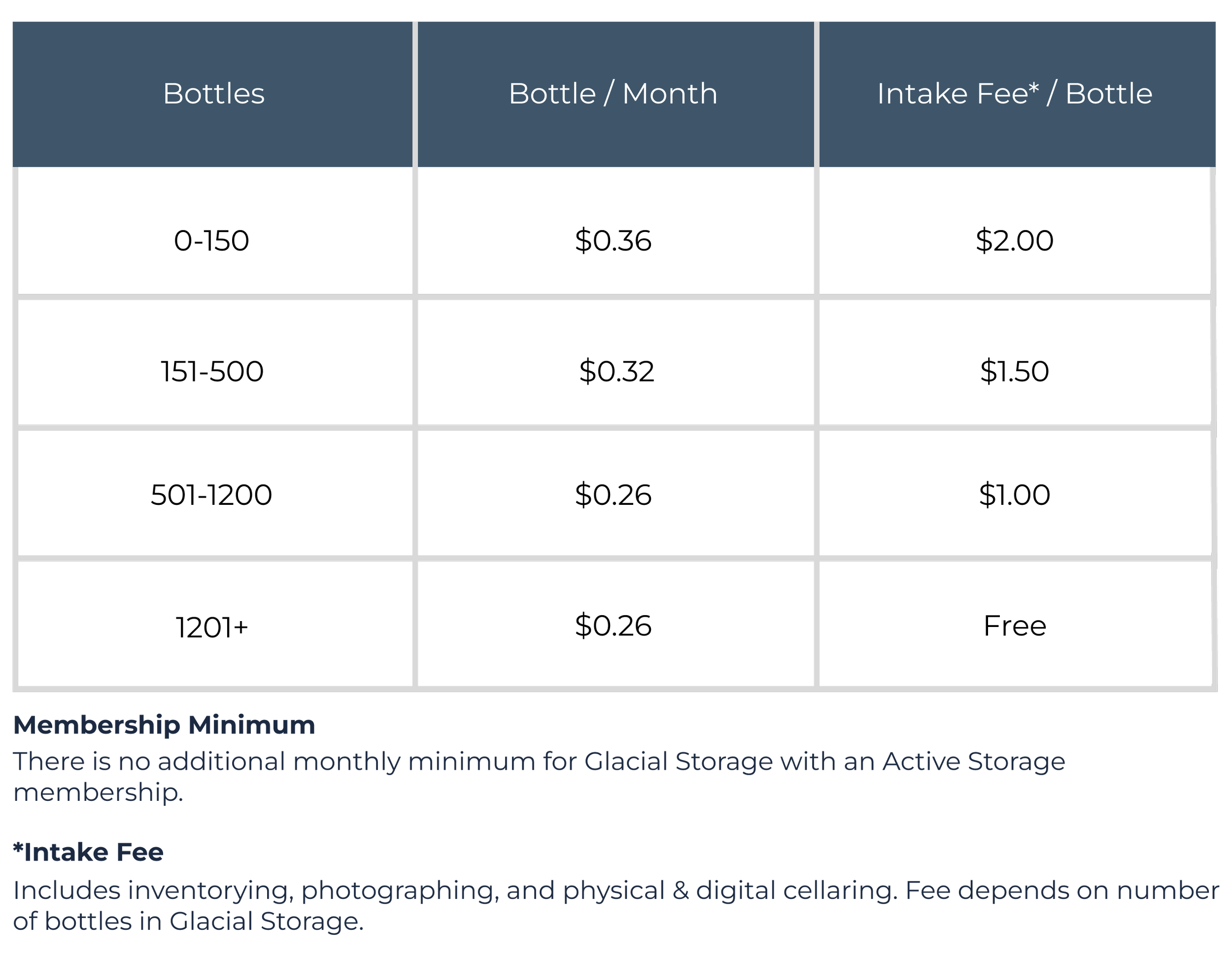 Glacial Storage Pricing